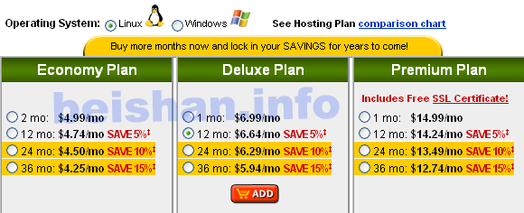 1. 在选择购买GoDaddy的虚拟主机(在GoDaddy的网页中选择菜单 Hosting & Servers => Web Site Hosting),就可以看到类似下面的页面: