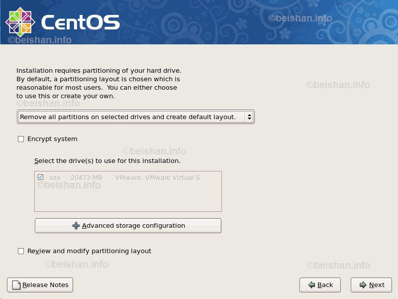 本地的虚拟机上的操作系统的安装就需要自己来完成,这里北山以VMware Player作为虚拟机系统,以 CentOS 5.4 的安装作为例子,演示服务器系统的安装。