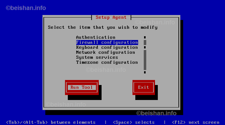 选择 Firewall configuration,用Tab键选择 Run Tool,然后按空格键或回车键
